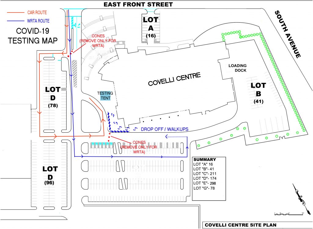Pre-registered patients will need to enter through the Covelli Centre’s main driveway located off of E Front Street, remain in their vehicles, and follow traffic control cones and officers. Testing will also be available for patients walking to the facility. If walking, patients should enter through the Covelli Centre’s main plaza and stand in line near the Covelli Centre’s VIP Entrance and main driveway turnaround. Youngstown Police Department will direct traffic flow into the Covelli Centre.